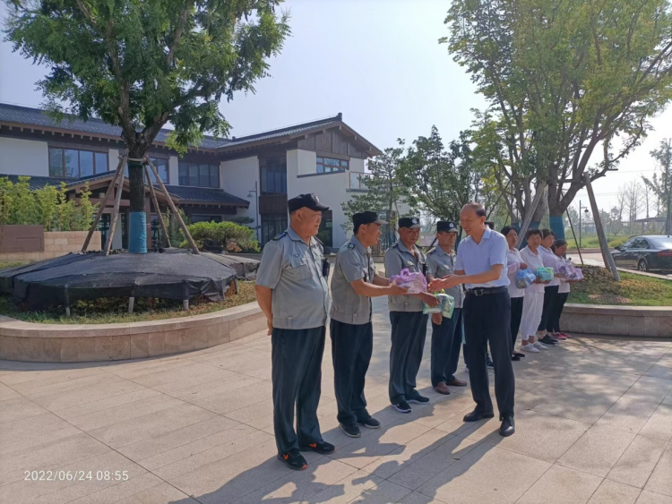 6月18日上午,集團(tuán)公司黨委委員副總經(jīng)理唐世軍一行來到朔西湖景區(qū)現(xiàn)場(chǎng)開展“送清涼慰問到一線 凝心聚力鼓干勁”活動(dòng),給一線員工送來防暑降溫品,為大家撐起一把“清涼傘”,送上一絲“清涼風(fēng)”。