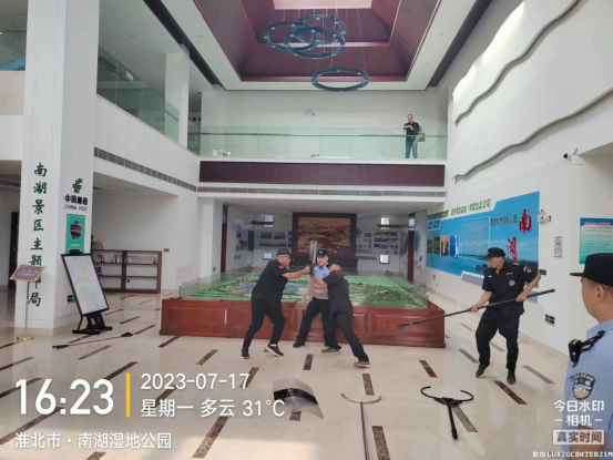 為了有效防范突發(fā)傷害事件,切實(shí)保障景區(qū)游客及員工人身安全,及時(shí)處置侵害人員安全的惡性事件,增強(qiáng)在真實(shí)情景下維穩(wěn)人員的心理素質(zhì)和反恐防暴意識(shí),提高員工應(yīng)對(duì)處置能力,2023年7月17日下午16點(diǎn),南湖公園公司聯(lián)合公安局烈山分局開展安全防暴防恐模擬演練活動(dòng),本次演練制定了詳細(xì)、周密的反恐防暴應(yīng)急演練預(yù)案,參加演練的部分員工,模擬突發(fā)傷害事件發(fā)生情況,進(jìn)一步提高了對(duì)突發(fā)傷害事件的防范能力。