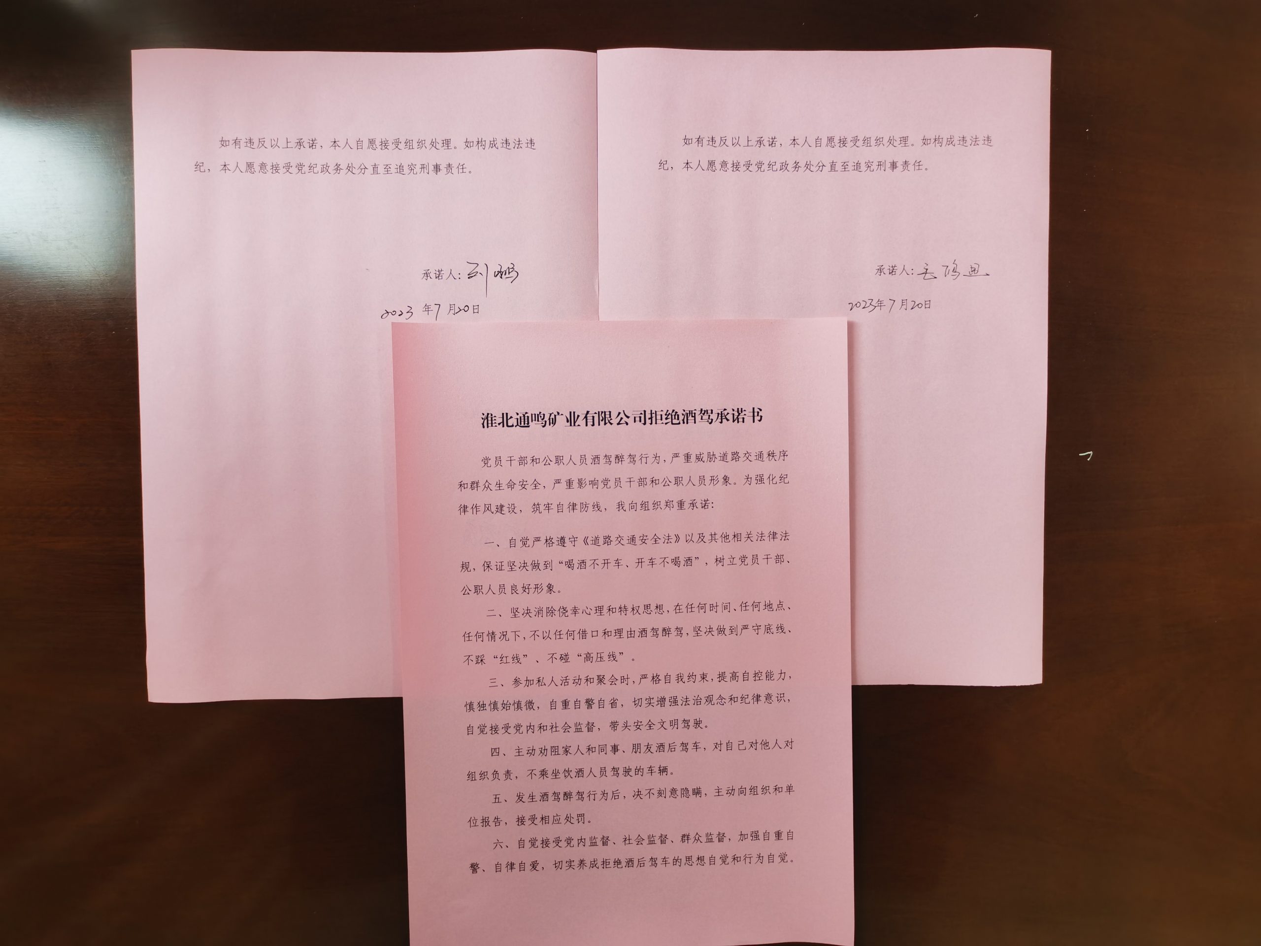 通過學習,大家對照“黨員干部、公職人員酒駕醉駕專項整治統(tǒng)計表”進行了自查自糾,簽訂了拒絕酒駕承諾書,并紛紛表態(tài):酒駕醉駕背后的“四風”問題絕不在自己身上發(fā)生,決不觸碰“開車不喝酒,喝酒不開車”這根紅線。