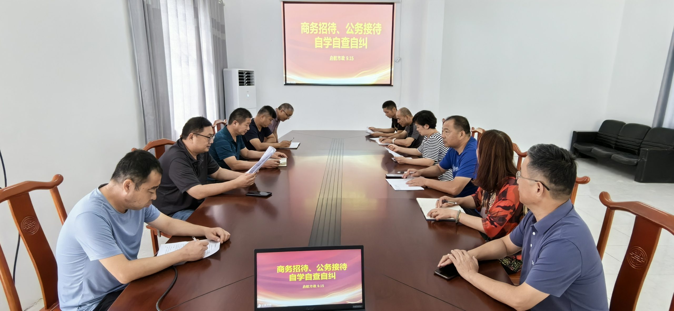 為貫徹落實(shí)中共淮北市紀(jì)律檢查委員會下發(fā)的《關(guān)于完善接待管理制度等方面工作的建議》文件精神,9月15日下午,啟航市政公司組織專題會議,對商務(wù)招待、公務(wù)接待開支情況進(jìn)行了專項自學(xué)自查自糾。