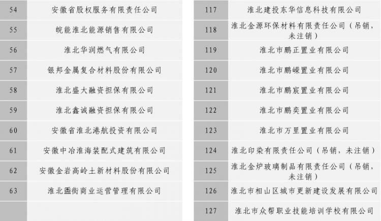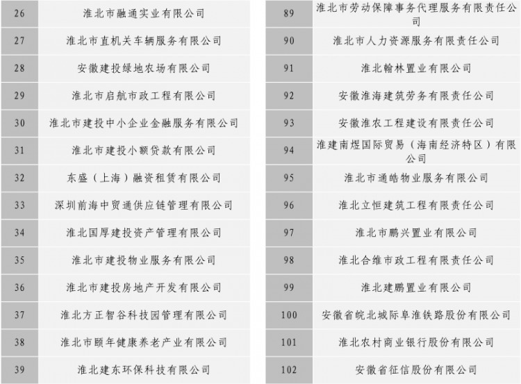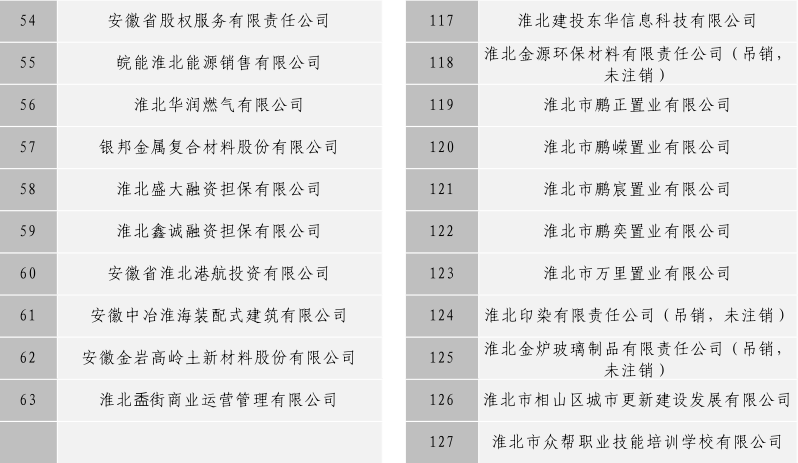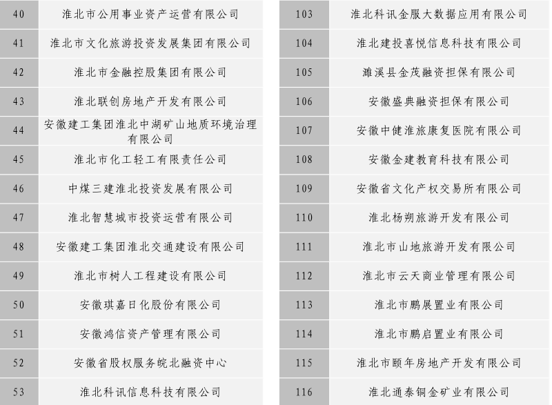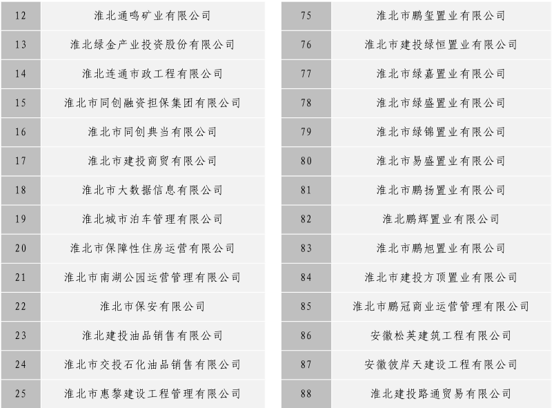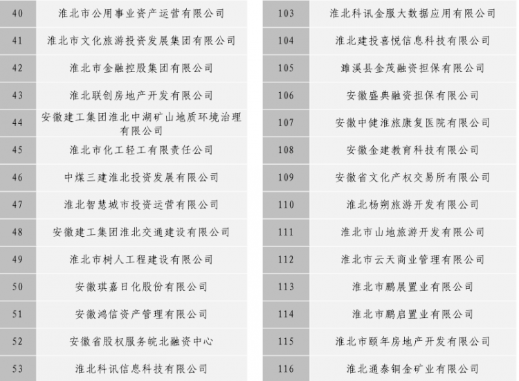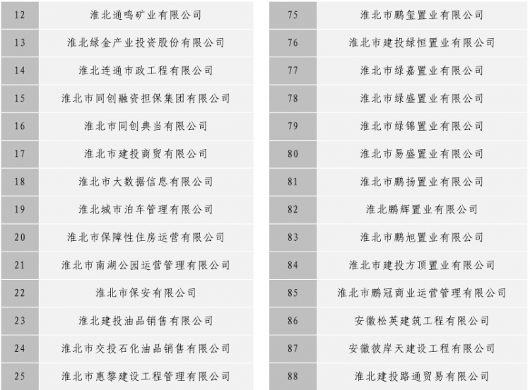 淮北市建投控股集團有限公司全級次企業(yè)名單目錄