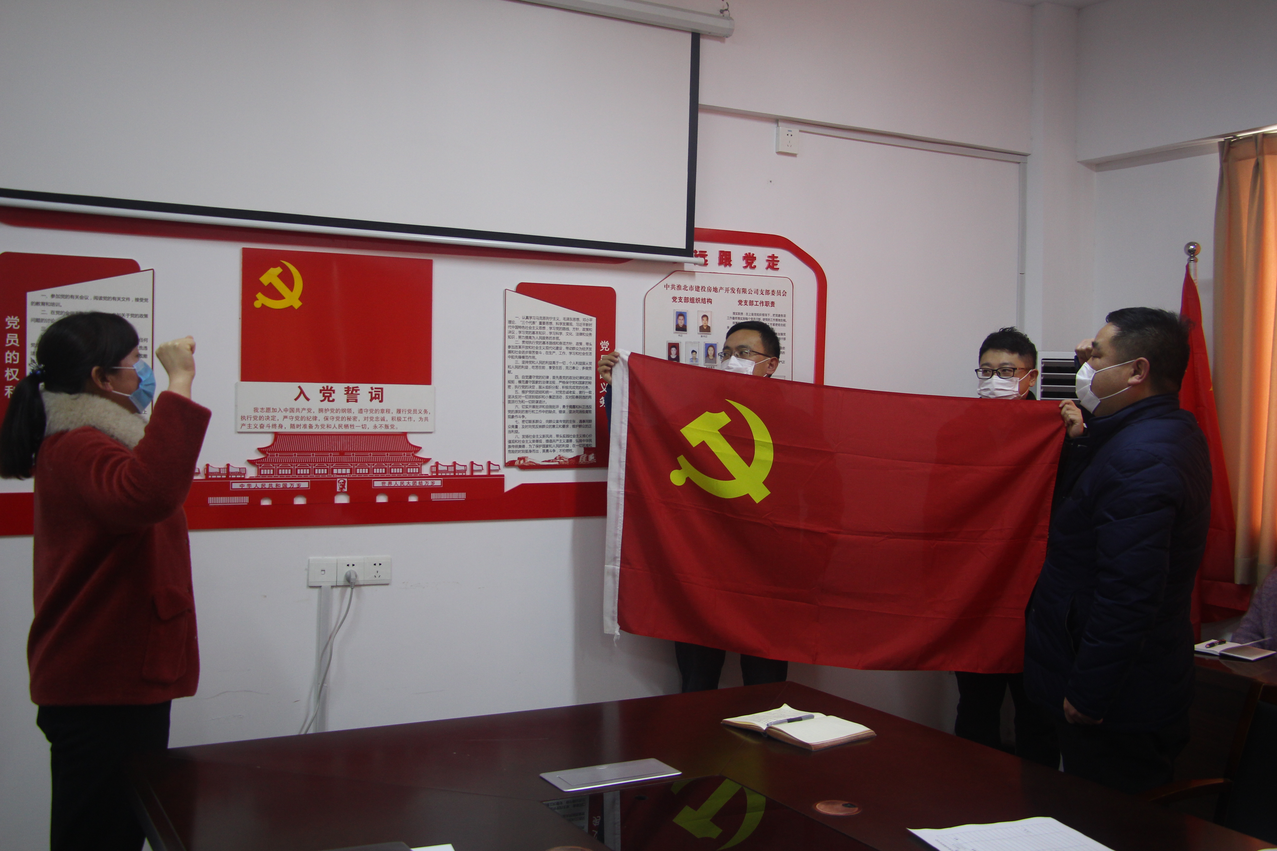 3月2號下午,在淮北市建投房地產(chǎn)公司會議室召開了一次特殊的黨員大會。這次會議的主題就是是否吸納趙倩倩為預備黨員。在趙倩倩作了申請發(fā)言后,房地產(chǎn)黨支部參加會議的黨員全票通過了趙倩倩同志轉(zhuǎn)為預備黨員,隨后支部副書記童曉強帶領(lǐng)她面對鮮紅黨旗莊嚴宣誓。