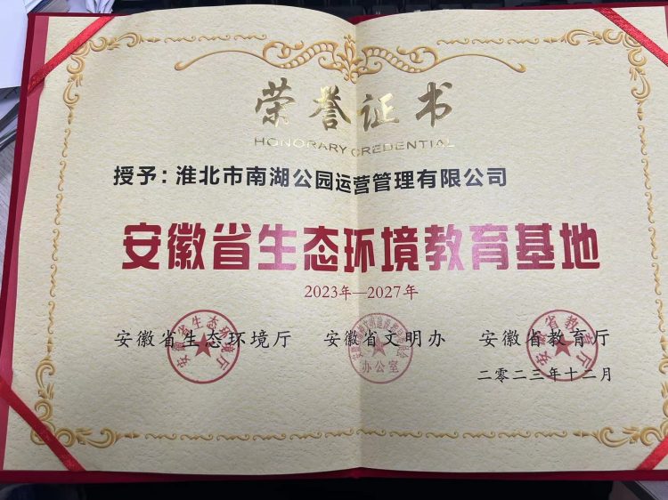 南湖公園榮獲首批“安徽省生態(tài)環(huán)境教育基地”稱號(hào)
