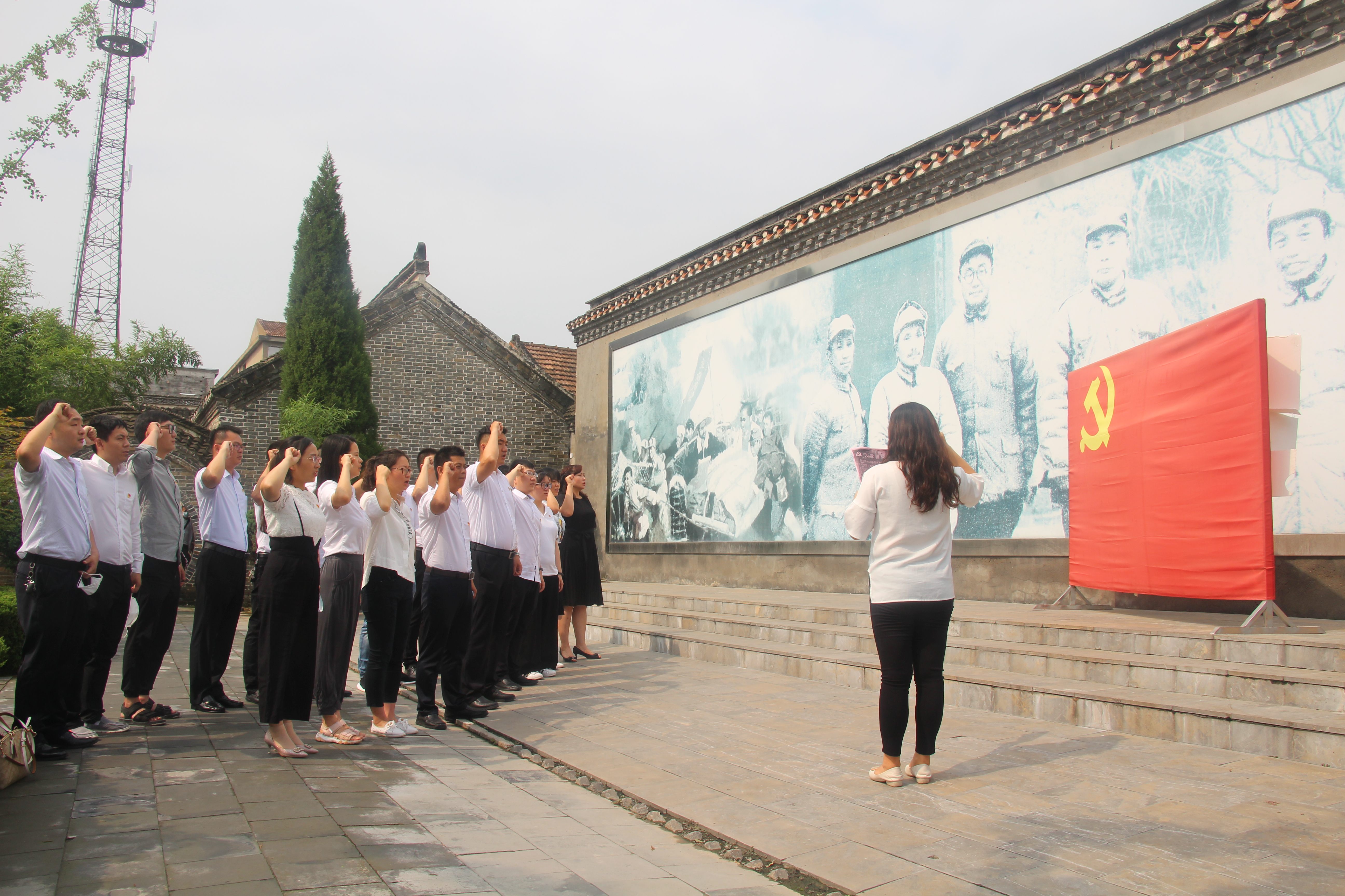為慶祝中國(guó)共產(chǎn)黨成立99周年,緬懷革命先烈的豐功偉績(jī)。6月30日上午,房地產(chǎn)公司黨支部一行22人,前往中共淮海戰(zhàn)役總前委駐地舊址臨渙文昌宮,踏尋紅色足跡,接受革命傳統(tǒng)教育,重溫入黨誓詞。