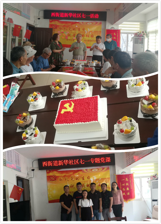 商貿(mào)公司黨支部黨員與新華社區(qū)共建開展以“獻(xiàn)禮黨的生日,祝福我的祖國”為主題的慶七一主題活動(dòng),黨員親筆書寫對黨和祖國的祝福,社區(qū)老黨員帶領(lǐng)全體黨員齊聲高唱《永遠(yuǎn)跟黨走》,在熱烈的歌聲中大家切蛋糕,共同慶賀黨的99歲生日,大家邊吃著蛋糕,邊說著今天的幸福生活。