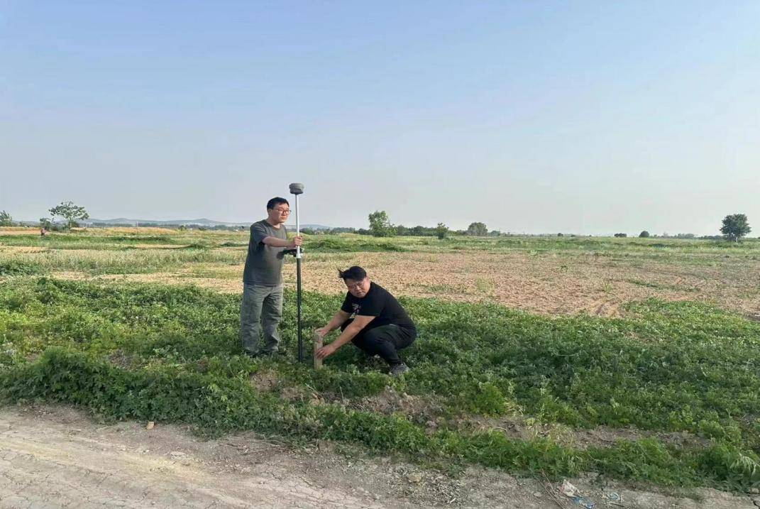 工程部左永宏、張勇等人認真核對地塊信息、指認土地邊界,使用GPS測繪儀等儀器圍繞地塊邊界丈量土地整體面積,記錄及整理相關數(shù)據(jù)……一系列環(huán)節(jié)有條不紊地進行,有效保證了測量數(shù)據(jù)的真實性和準確性。