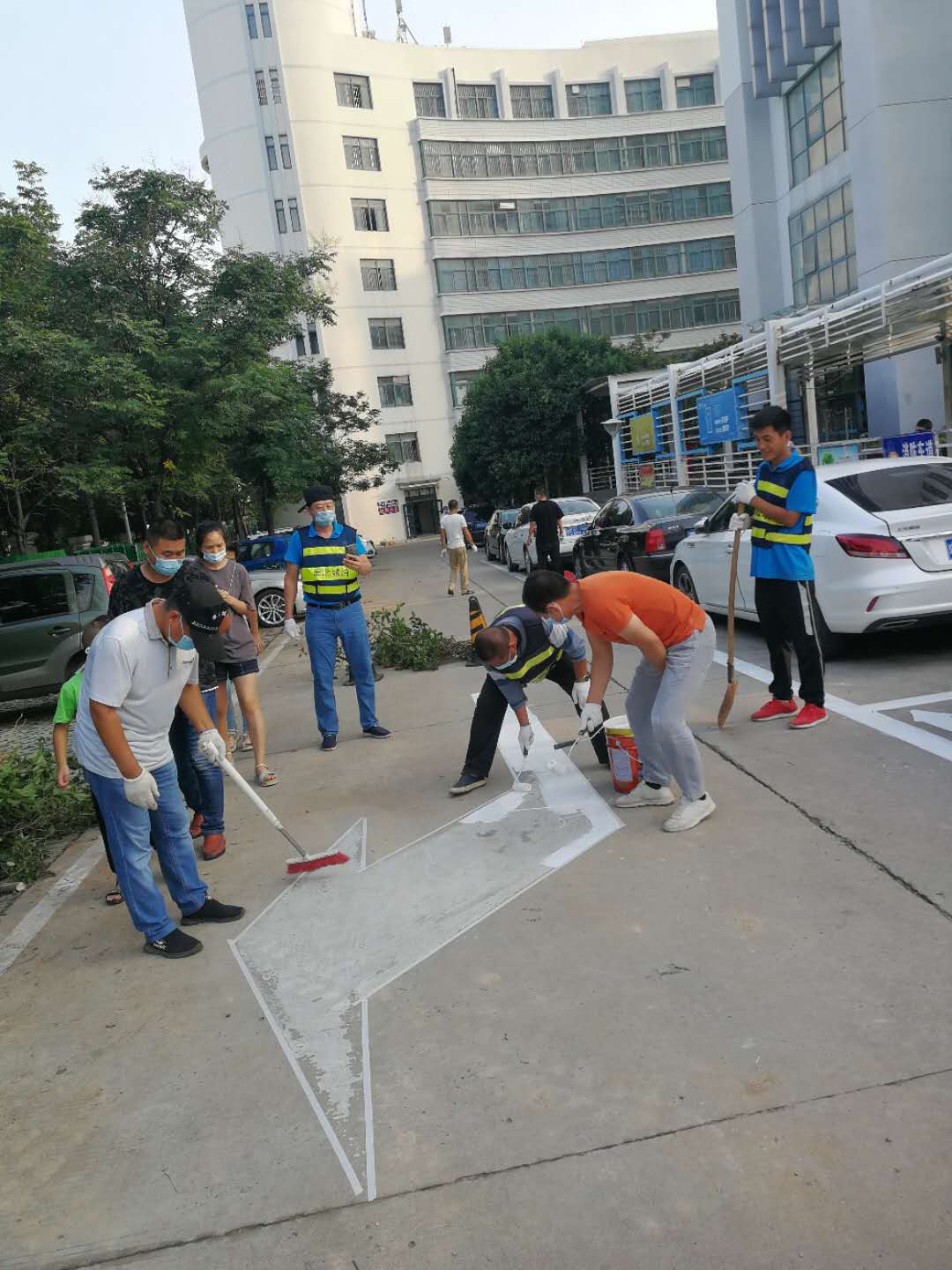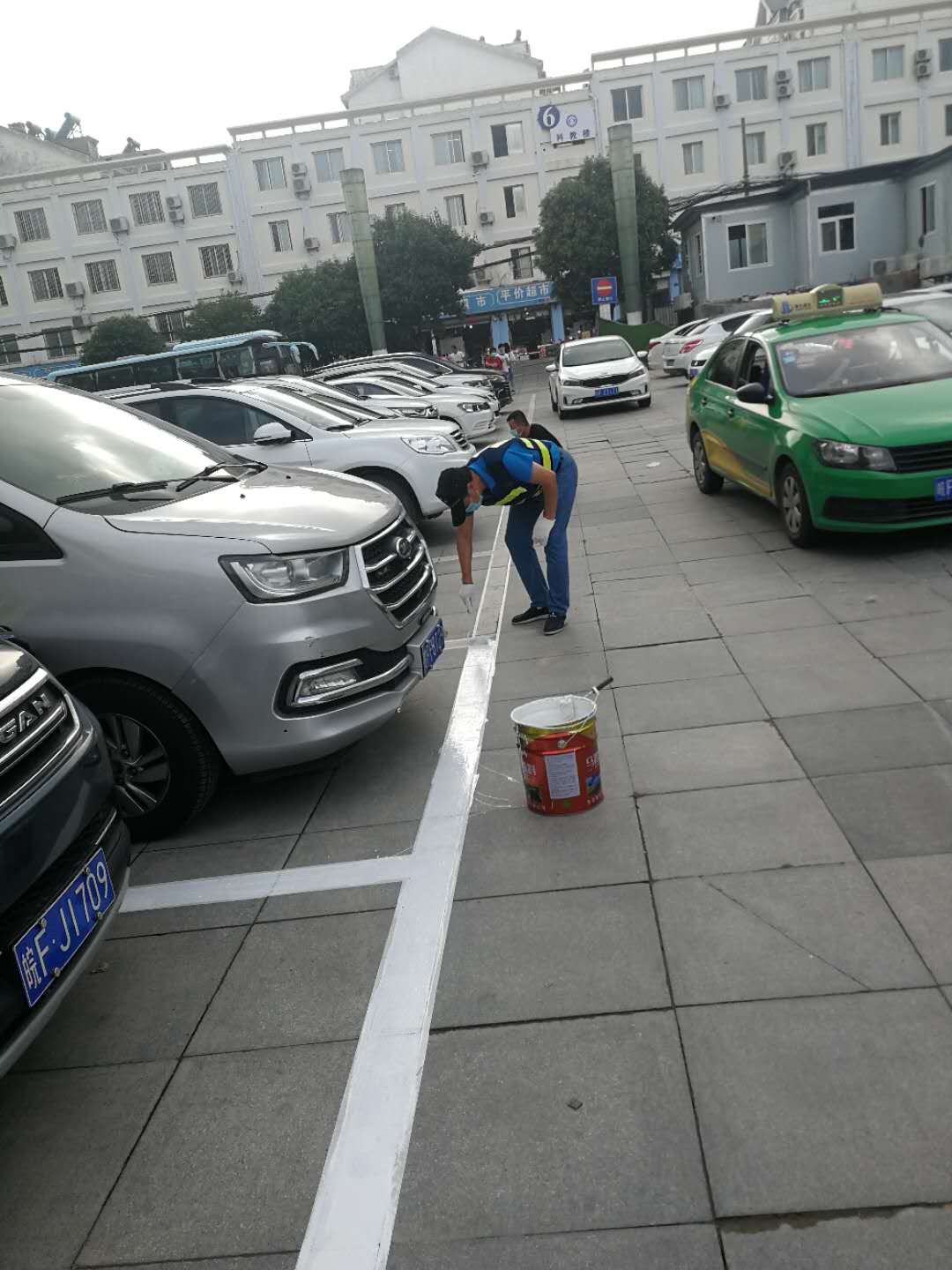 由于人民醫(yī)院住院部停車泊位緊張、車輛停放密集,施工必須在停放車輛駛出清場后,才能進(jìn)行。為了不影響市民停車避開停車高峰,公司工作人員需要在中午、凌晨乃至半夜進(jìn)行劃線任務(wù)。雖然辛苦,但是我們畫起線來一絲不茍,為了減少雨水對停車線的侵蝕,畫停車線時(shí)反復(fù)多次施劃增加耐久度,為了整齊美觀,施劃每一條線時(shí)都會(huì)用標(biāo)尺認(rèn)真的比量??此坪唵蔚膹?fù)描劃線工作,實(shí)際上仍存在很大的工作阻力,市民因?yàn)椴荒艿谝粫r(shí)間停車有所抱怨對我們工作人員的工作造成了一定的困擾,但是我們依舊積極協(xié)調(diào)、解釋和溝通,圓滿的完成了復(fù)描任務(wù),讓原本斑駁的車位線煥然一新。