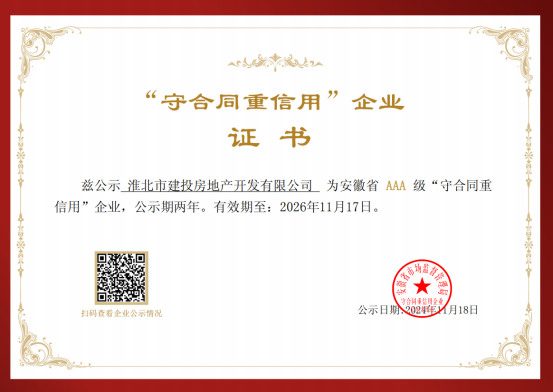 11月18日,省市場管理監(jiān)督局發(fā)布了2022-2023年安徽省AAA級(jí)“守合同重信用”企業(yè)信用等級(jí)評(píng)定結(jié)果,淮北市建投房地產(chǎn)開發(fā)有限公司憑借良好的綜合實(shí)力和市場滿意度、信譽(yù)度,獲評(píng)“AAA”級(jí)守合同重信用企業(yè)稱號(hào),成為全省618家“AAA”級(jí)信用企業(yè)之一。