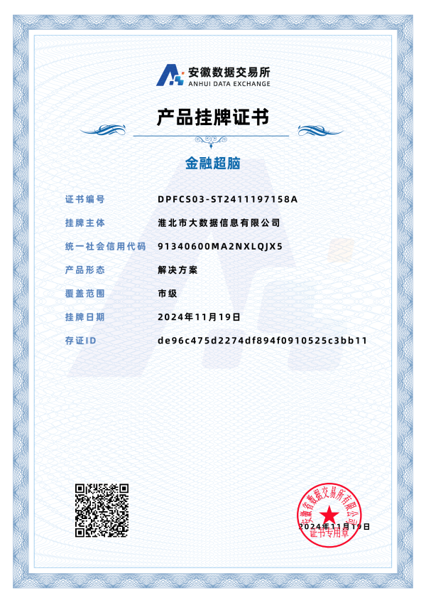 數(shù)據(jù)產(chǎn)品掛牌上市正式開啟數(shù)據(jù)交易之旅,持續(xù)擴(kuò)大“金融超腦”產(chǎn)品的影響力,促進(jìn)我市普惠金融業(yè)務(wù)均衡發(fā)展,推動(dòng)大眾創(chuàng)業(yè)、萬(wàn)眾創(chuàng)新,助推經(jīng)濟(jì)發(fā)展方式轉(zhuǎn)型升級(jí)。同時(shí),憑借在金融超腦平臺(tái)上的普惠金融助貸數(shù)據(jù)集,淮北市大數(shù)據(jù)信息有限公司順利申請(qǐng)到數(shù)據(jù)知識(shí)產(chǎn)權(quán),進(jìn)一步彰顯了公司在數(shù)據(jù)資源開發(fā)利用與合規(guī)管理方面的卓越能力與前瞻性布局。