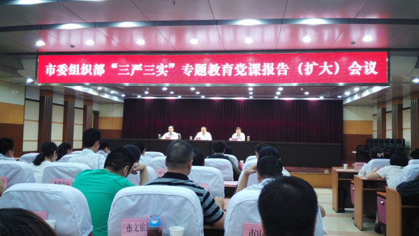 按照全市“三嚴(yán)三實(shí)”專題教育部署安排,結(jié)合“弘揚(yáng)沈浩精神、建設(shè)模范部門”主題實(shí)踐活動,5月20日下午,市委組織部召開“三嚴(yán)三實(shí)”專題教育黨課報告(擴(kuò)大)會議。市委常委、市委組織部部長、市政府常務(wù)副市長沈光繼出席會議,并為全市組工干部上了一堂生動的黨課。