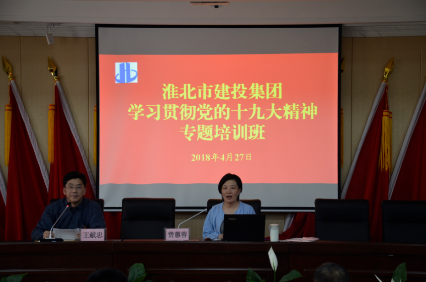 為深入學習貫徹黨的十九大精神,4月27日下午,市建投集團在五樓會議室舉辦黨的十九大精神專題培訓班。淮北市委黨校校委委員、法學與管理教研室主任費蕙蓉教授為淮北市建投集團廣大黨員干部專題解讀了習近平新時代中國特色社會主義思想和黨的十九大精神,來自集團公司的黨員干部近130人參加了本次專題培訓。
