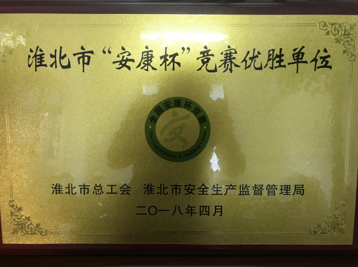 2017年,市總工會、市安全生產(chǎn)監(jiān)督管理局在全市開展了以“安全培訓(xùn)提素質(zhì)、班組管理強(qiáng)基礎(chǔ)”為主題的“安康杯”競賽活動?;幢笔薪ㄍ犊毓杉瘓F(tuán)有限公司為保障企業(yè)的安全生產(chǎn)及職工的安全健康,充分調(diào)動廣大職工參與群眾性安全生產(chǎn)活動的積極性、主動性和創(chuàng)造性,認(rèn)真貫徹落實(shí)黨的十九大精神,在集團(tuán)公司范圍內(nèi)開展2017年度“安康杯”競賽活動,在安全生產(chǎn)工作中取得了優(yōu)異成績,被淮北市總工會和淮北市安全生產(chǎn)監(jiān)督管理局評為淮北市“安康杯”競賽優(yōu)勝單位。