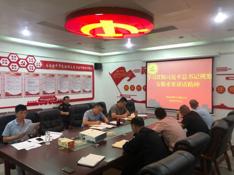 會議要求, 公司各部門、中隊采取多種形式組織學(xué)習(xí)貫徹,把學(xué)習(xí)習(xí)近平總書記考察安徽重要講話指示精神與學(xué)習(xí)貫徹習(xí)近平新時代中國特色社會主義思想結(jié)合起來;與學(xué)習(xí)貫徹《習(xí)近平談治國理政》第三卷結(jié)合起來,切實做到入腦入心、篤信篤行。緊緊圍繞習(xí)近平總書記考察安徽重要講話指示中明確的重點任務(wù)聚力用勁,立足保安工作職能,堅持穩(wěn)中求進工作總基調(diào),堅持高質(zhì)量轉(zhuǎn)型發(fā)展,確保習(xí)近平總書記重要講話精神落地生根、開花結(jié)果。