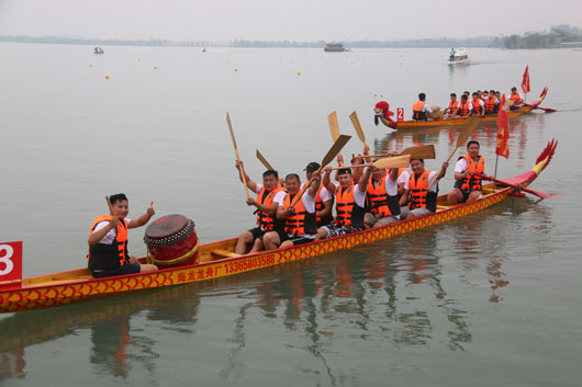 當(dāng)日,市建投集團(tuán)、田徑愛(ài)好者、體育傳媒等12支參賽龍舟隊(duì)在南湖上展開(kāi)激烈角逐,當(dāng)?shù)乇姸嗍忻裨诤厼檫x手們吶喊助威,感受濃濃的端午民俗。