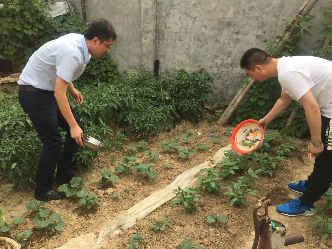 天氣炎熱,幫扶小組囑咐王心及其妻子保護身體,注意防暑降溫,并為其打掃庭院,灌溉院內(nèi)菜地。