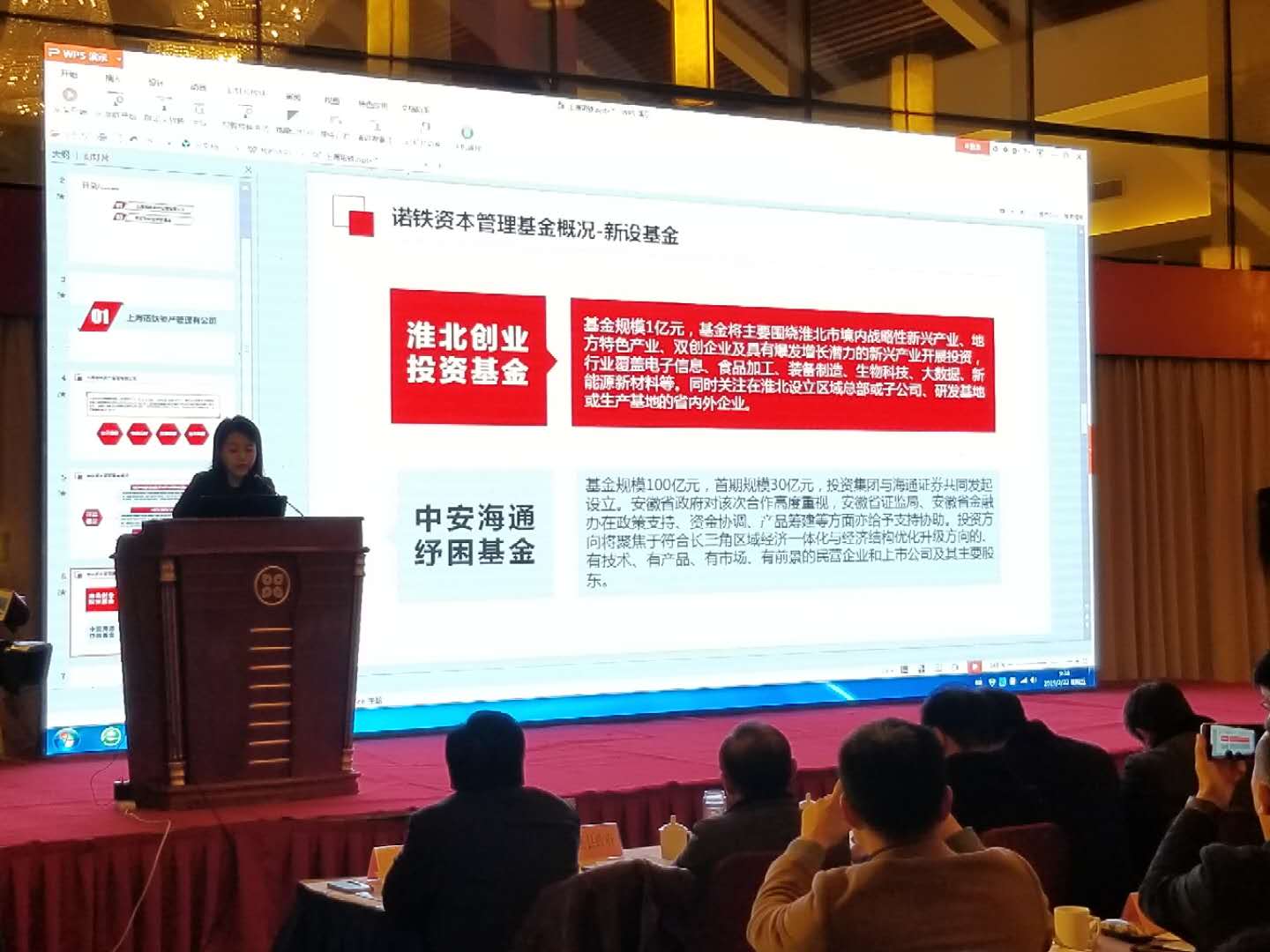 在會議宣講環(huán)節(jié),首先由安徽省高新技術(shù)產(chǎn)業(yè)投資有限公司黨委委員、副總經(jīng)理陳昌勝介紹省投資集團與淮北市股權(quán)投資基金等戰(zhàn)略合作情況,然后淮北市創(chuàng)業(yè)投資基金、安徽省高新投新材料投資基金、淮北市成長型中小企業(yè)基金三只基金的基金管理人代表分別對基金進行宣講。